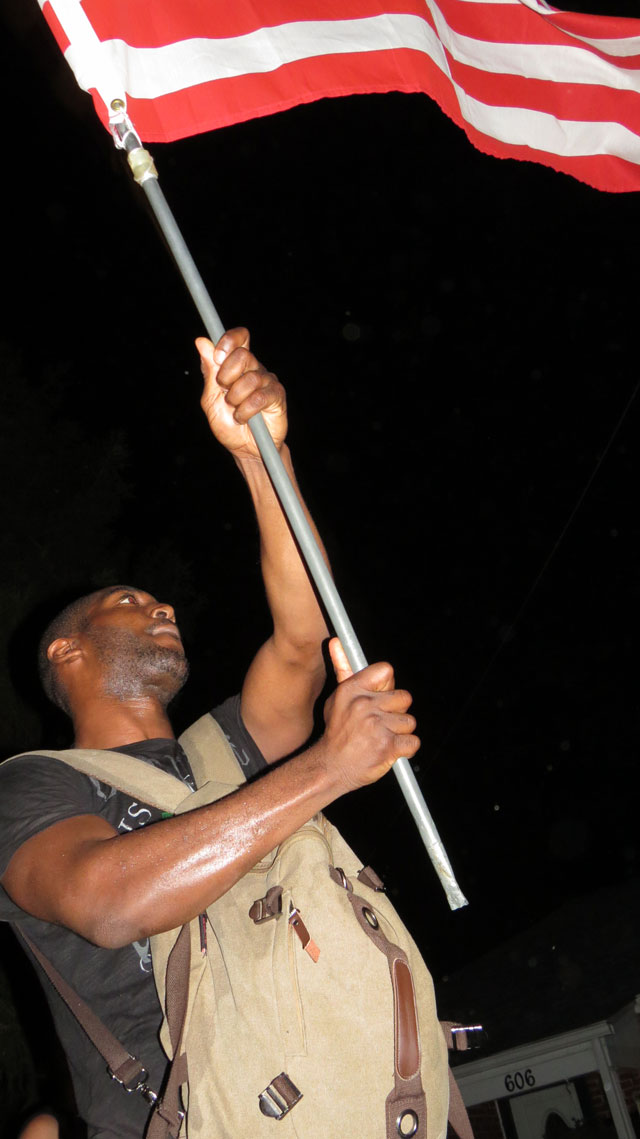 A man waves the American flag during a protest march down West Florissant Avenue on Friday, Aug.22. (David DesRoches photo)